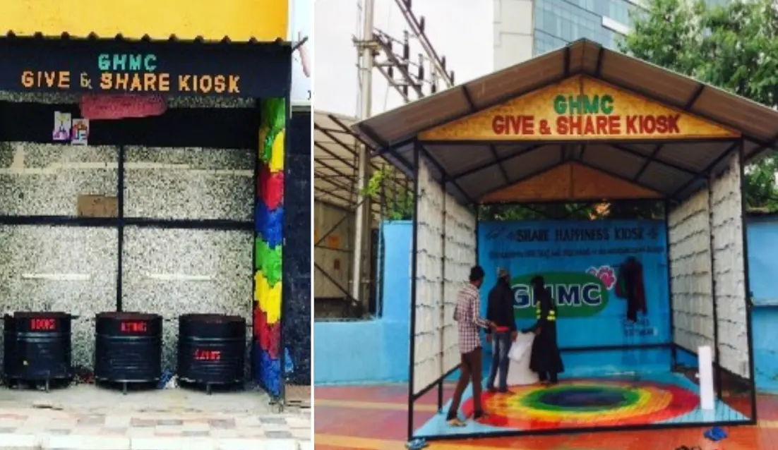 Hari Chandana started Give and Share Kiosks in 2017 with an objective which is an exact resemblance of central governments Reduce, Recycle and Reuse (RRR) that is to deposit unused or used plastic items, clothes, shoes, footwear, books, and toys by citizens, institutions, commercial enterprises, which can be taken by the needy. The leftovers are recycled contributing to a circular economy.
