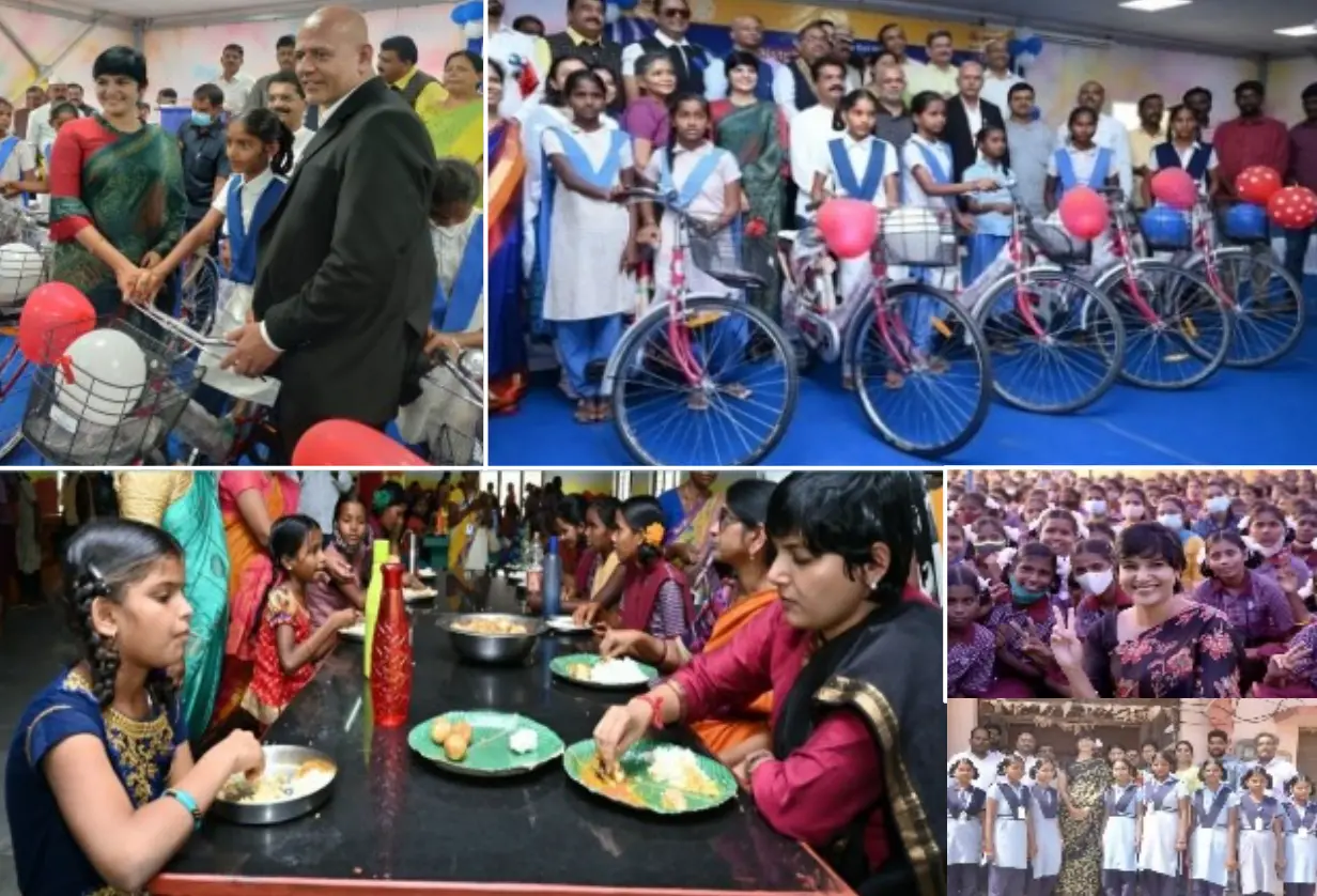 by distributing 800 Bicycles to school-going girls/ children in rural areas where access to school is very difficult for them, she made this happen with the help of corporate companies from their CSR. She cares for rural girls and they are fed with nutritional food at government hostels. These activities aim to eradicate illiteracy, malnutrition and also, to create a more equitable society where mothers can celebrate the birth of a girl child with joy and hope for the future ensuring Beti Bachao Beti Padhao mission. Her concern and care for the girl child goes beyond the call of duty and she made it a habit to visit the mid day meal venues often